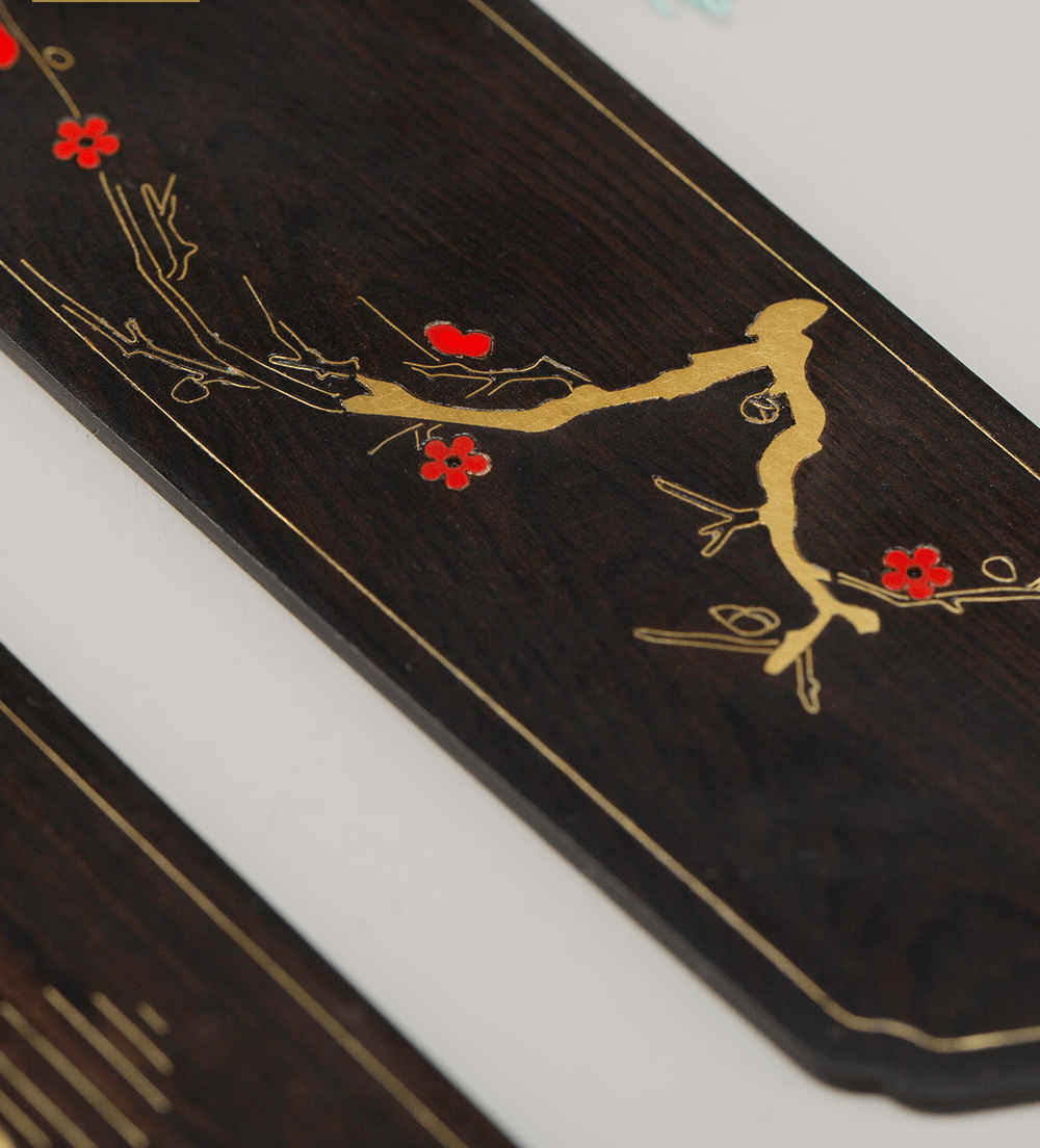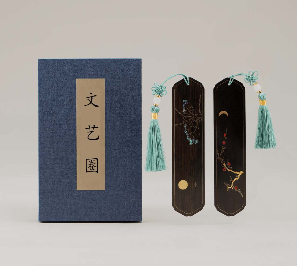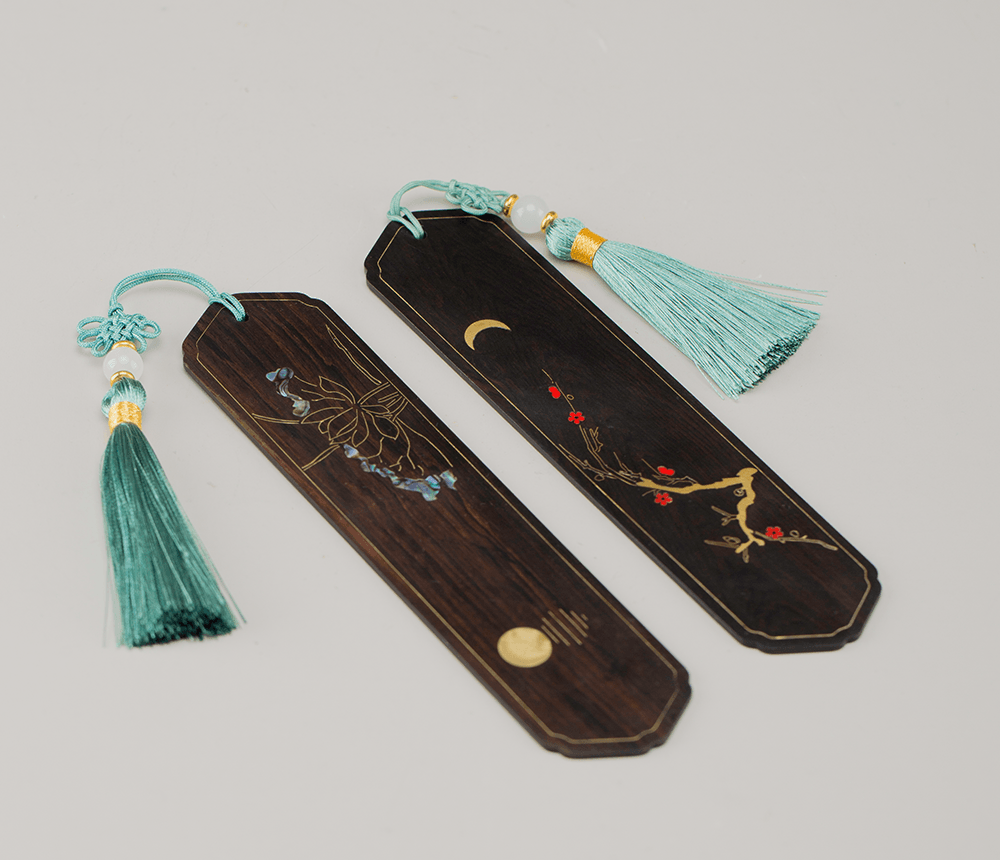 【产品名称】花月吟书签 【类别】文创 【材质】黄铜、大漆、螺钿、酸枝、紫光檀。 【作品规格】书签尺寸:14.7*3.5*1.8cm;包装盒:17*11*2cm。 【定制情况】可定制